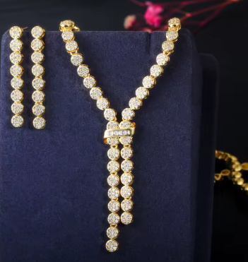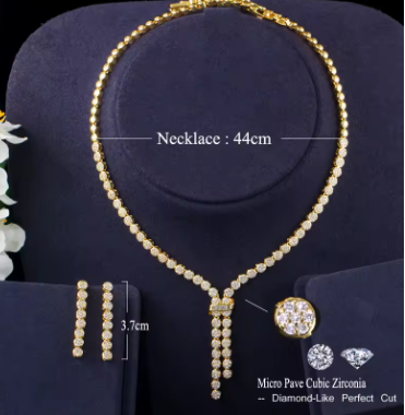 الصفحة الرئيسية اثاث طقم مجوهرات زركون ذهبي لامع